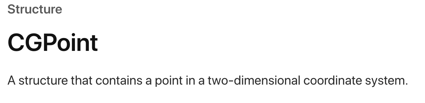 애플 공식 문서를 보면 CGPoint는 좌표시스템이라고 나와있다.