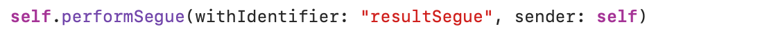 prepare메소드에서 segue.identifier 가 resultSegue 라면을 통해서 적절한 세그웨이를 찾느다.